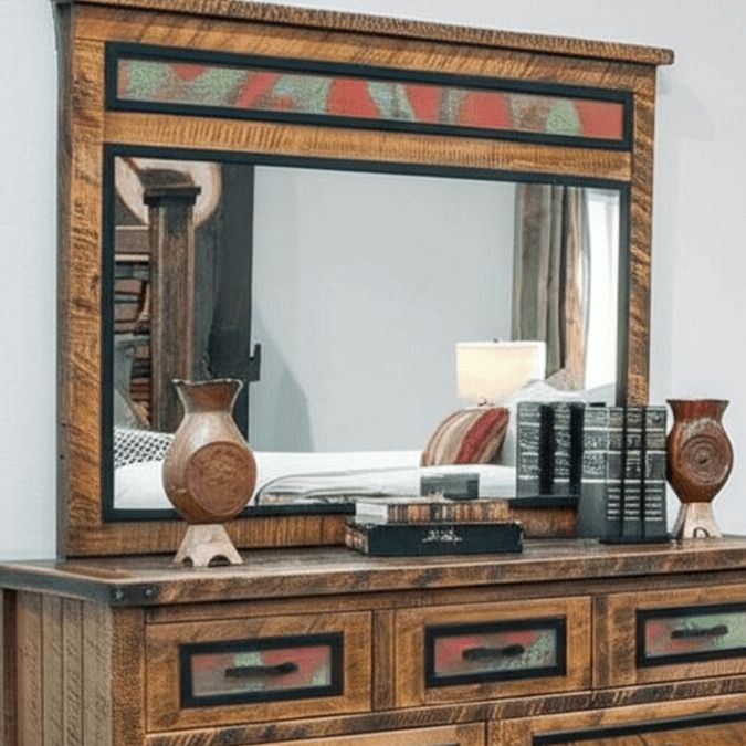 | Finish: | Your choise of the following finishes: Honey Amber, American Chestnut, Weathered Gray, Driftwood White or Antique Barnwood Images are shown in the Antique Barnwood Finish. Note: Back of Mirror comes unfinished. The finish options for this custom piece of furniture is a premium high quality finish that includes a lacquer. That lacquer is not water proof but is water resistant. |