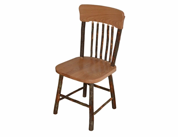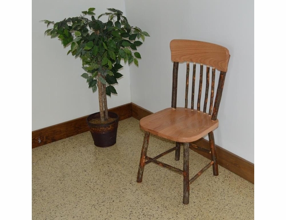 Hickory Farm Style Side Chair uses most premium hickory sticks and hickory or oak slats. These pieces are joined together to create this incredible side chair. The chair can be delivered as an all-natural unfinished product or can have a variety of stains as well.