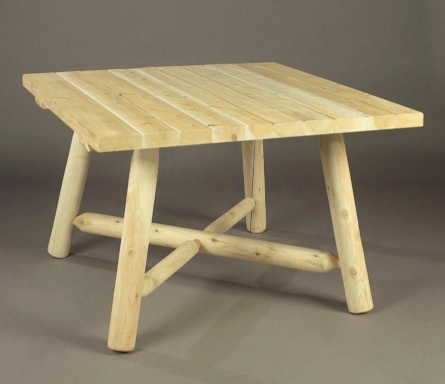 42" Rustic Square Log Style Dining TableScroll below to see our VIDEO about this Rustic Log Style Dining TableIt's little wonder that the Cedar Wood Log-Style Rustic Square Dining Table from Cedarwood Furniture is one of our most popular tables. Made in Canada of Northern white cedar logs that have been kiln dried and peeled for a smooth, natural finish, this table boasts mortise-and-tenon joinery and coated, rust-resistant hardware. Standing 28" tall, it has a 42" square top that supplies plenty of room for dishes and diners. We carry a variety of matching seating options, like our