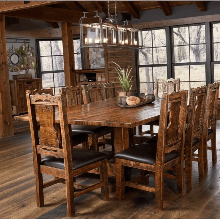 Decorative Details: | Dining Chairs: Features a Contoured Seat Back Dining Table: Sturdy, simple, rustic design |